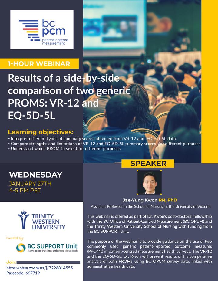 Results of a side-by-side comparison of two generic PROMs: VR-12 and EQ-5D-5LJae-Yung KwonLast updated on Jan 1, 2022VideoJae-Yung KwonAssistant Professor of Nursing